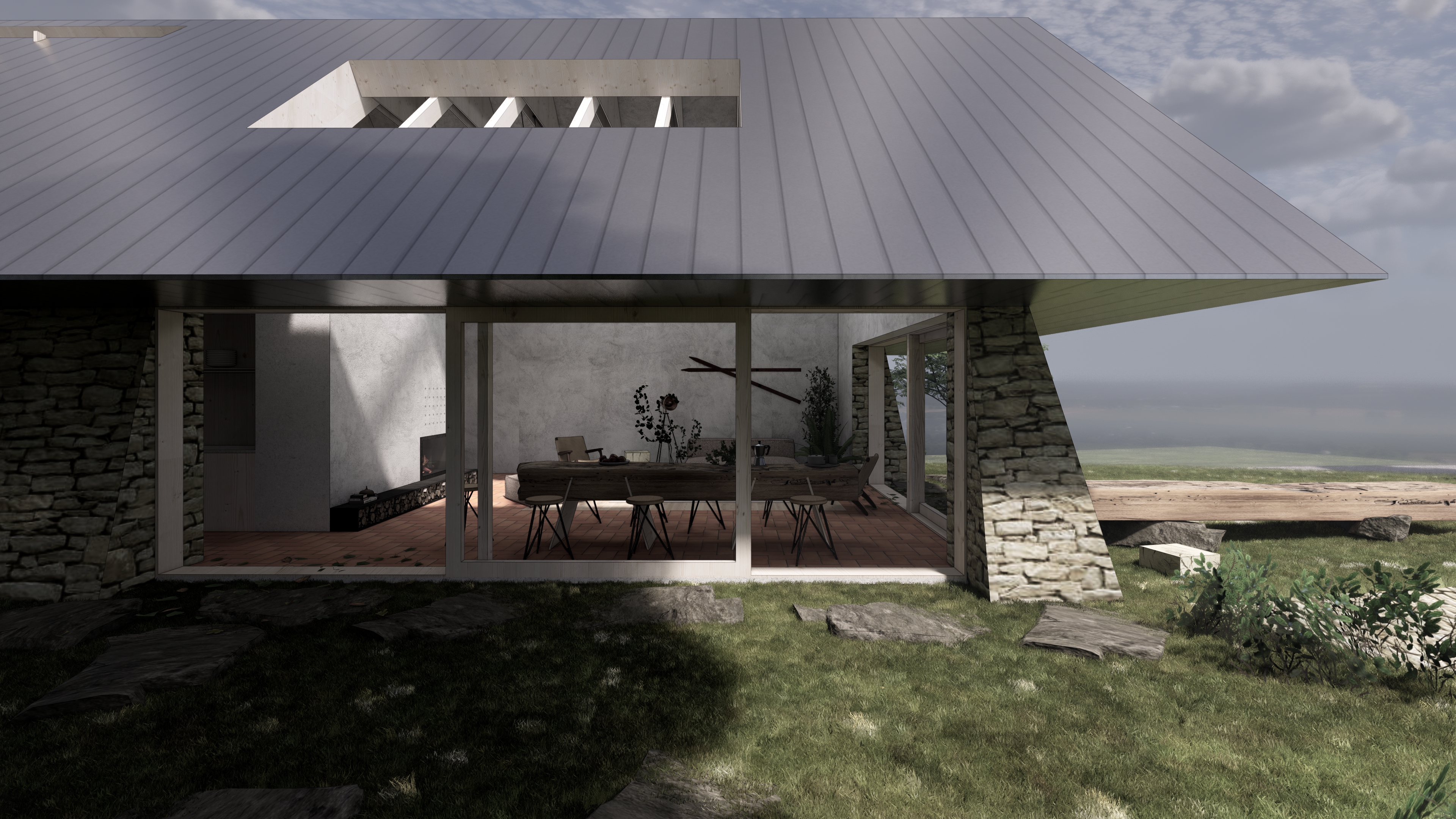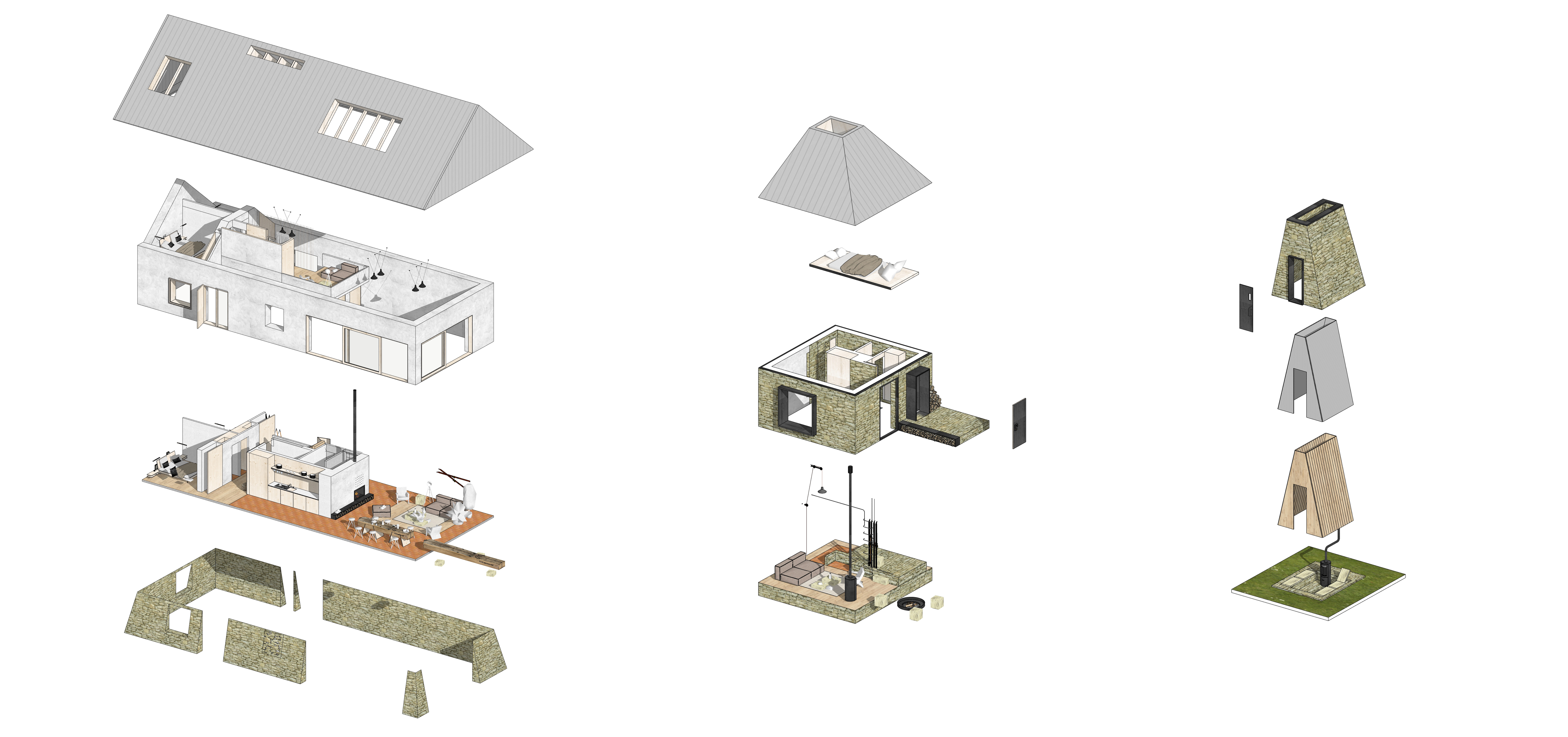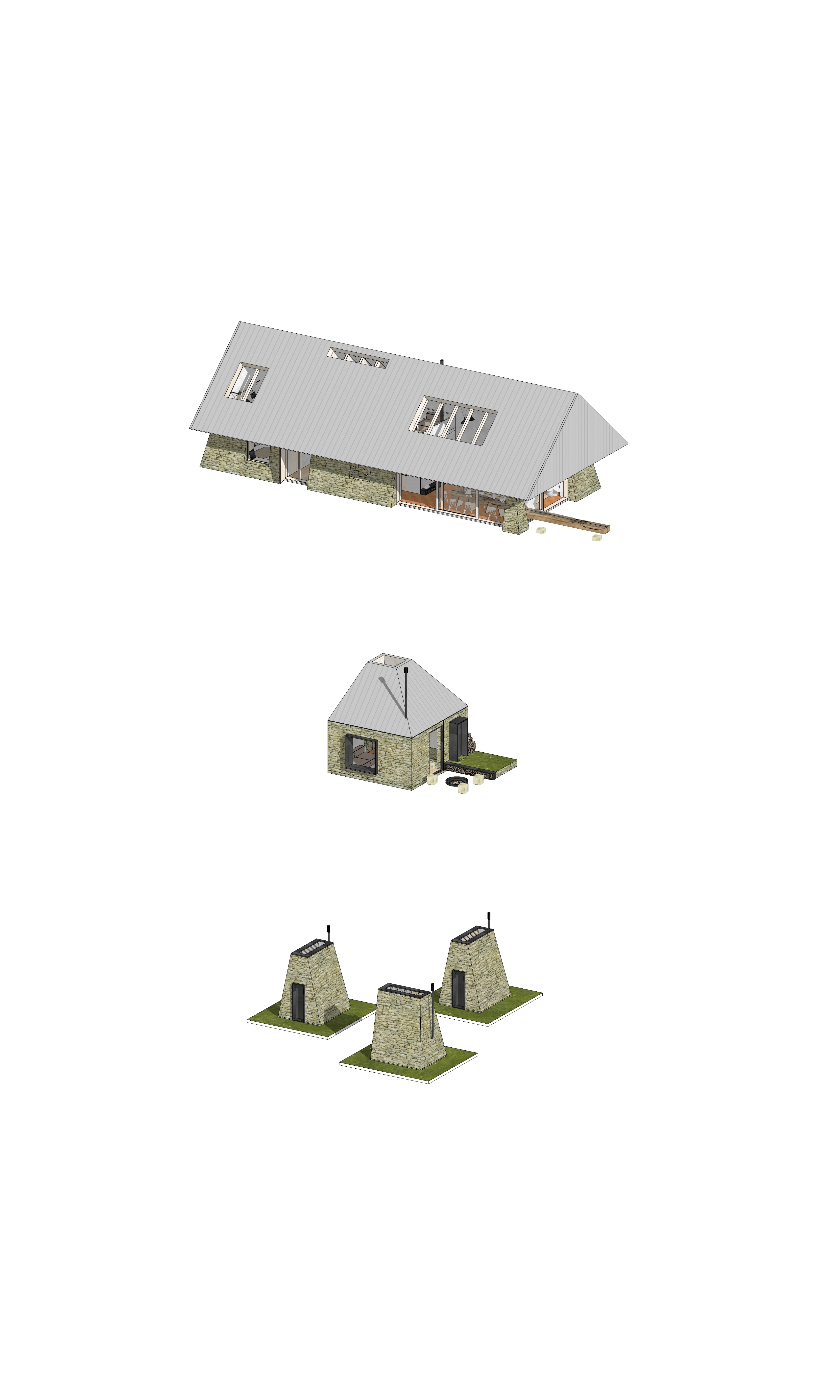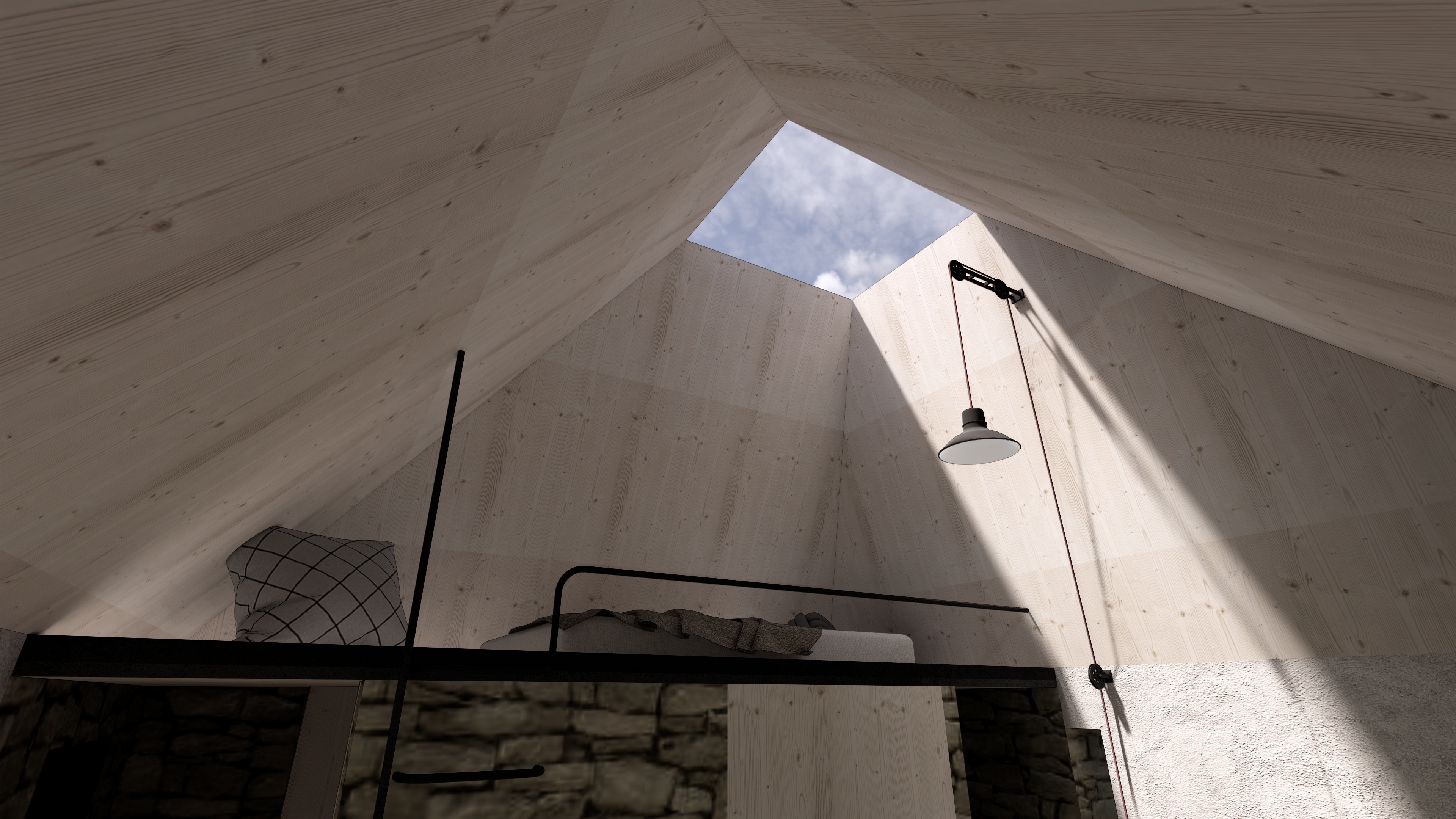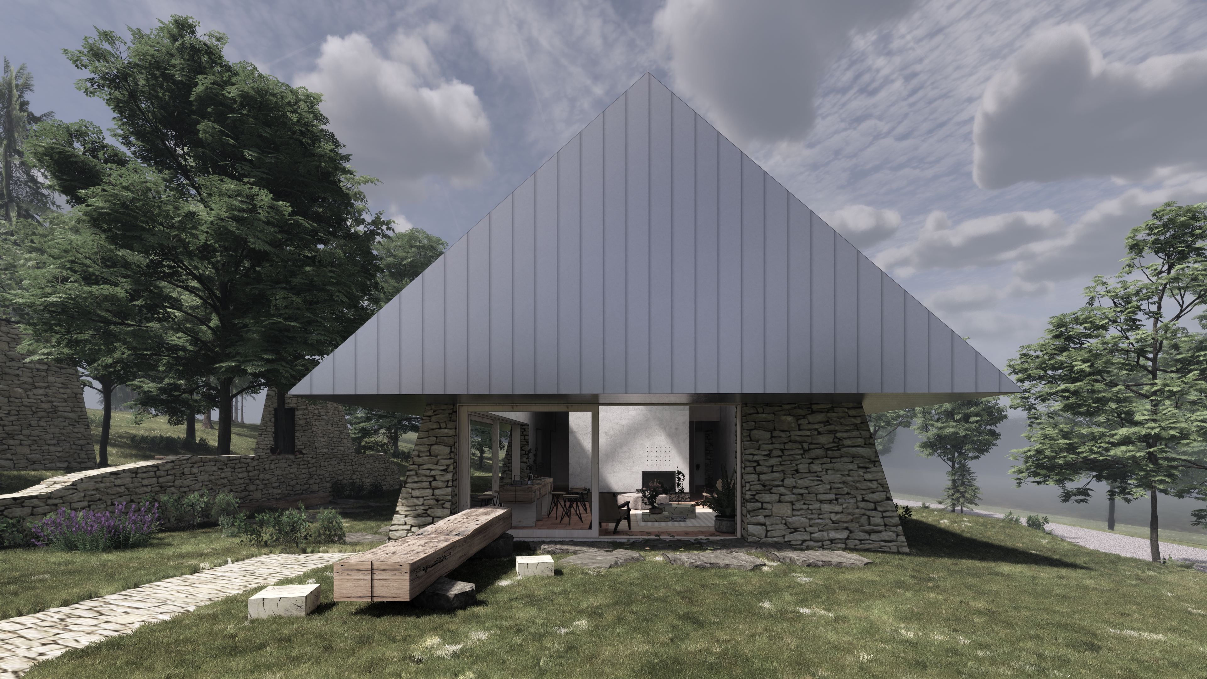 The renovation design is based on the rural character of the location and aims to create unobtrusive, simple architecture that blends naturally into the environment. The main building, the barn, serves as a communal meeting place and continues the tradition of rural buildings in terms of its appearance and material design. The traditional three-room design (“pitvor” – hallway – storage room) has been reinterpreted and adapted for contemporary use, consisting of a room, an entrance area with technical and sanitary facilities, and a communal area. The entrance is covered by a distinctive gable roof overhang, creating a natural transition between the exterior and interior while referencing the archetypal form of the house. The complex also comprises smaller accommodation cabins with skylights to bring natural light and a sense of mystery to the interior. The atmosphere is complemented by a freestanding sauna which also makes use of natural light and simple forms. Rather than creating a striking architectural feature, the buildings quietly enhance the quality of their surroundings through an emphasis on scale, functionality, and attention to detail.